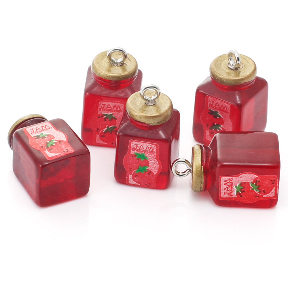 模擬イチゴジャムボトル食品おもちゃ樹脂ペンダント DIY クリエイティブ食品イヤリングキーホルダージュエリーペンダントアクセサリー