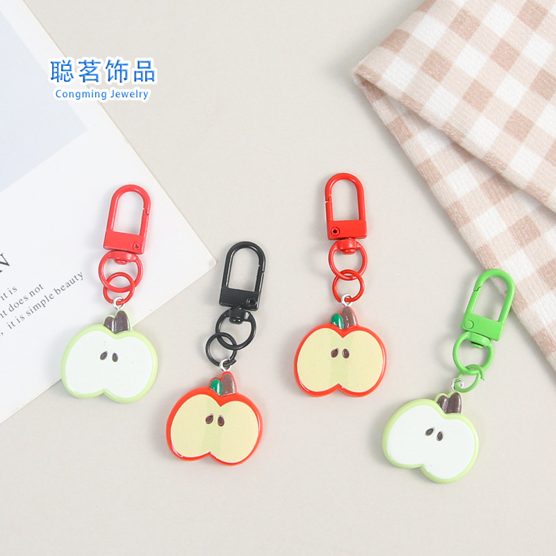 クリエイティブかわいい赤いスライスリンゴ漫画楽しい食品おもちゃキーホルダージュエリーペンダント男性と女性のバッグアクセサリー