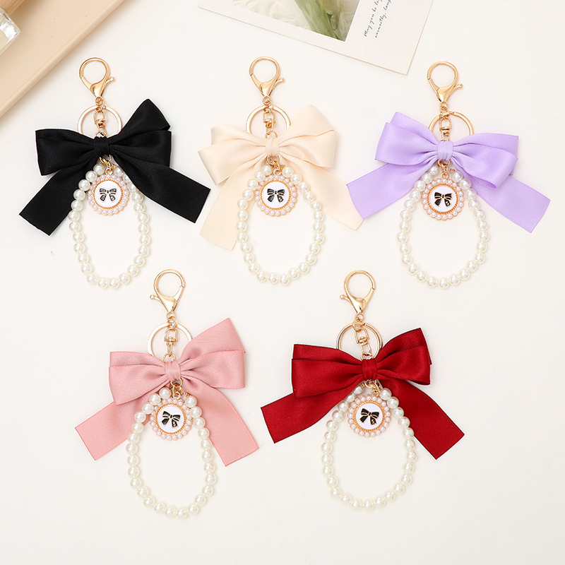 Ins新作小香風真珠蝶結びキーホルダーストラップバッグアクセサリー手首式携帯ストラップ