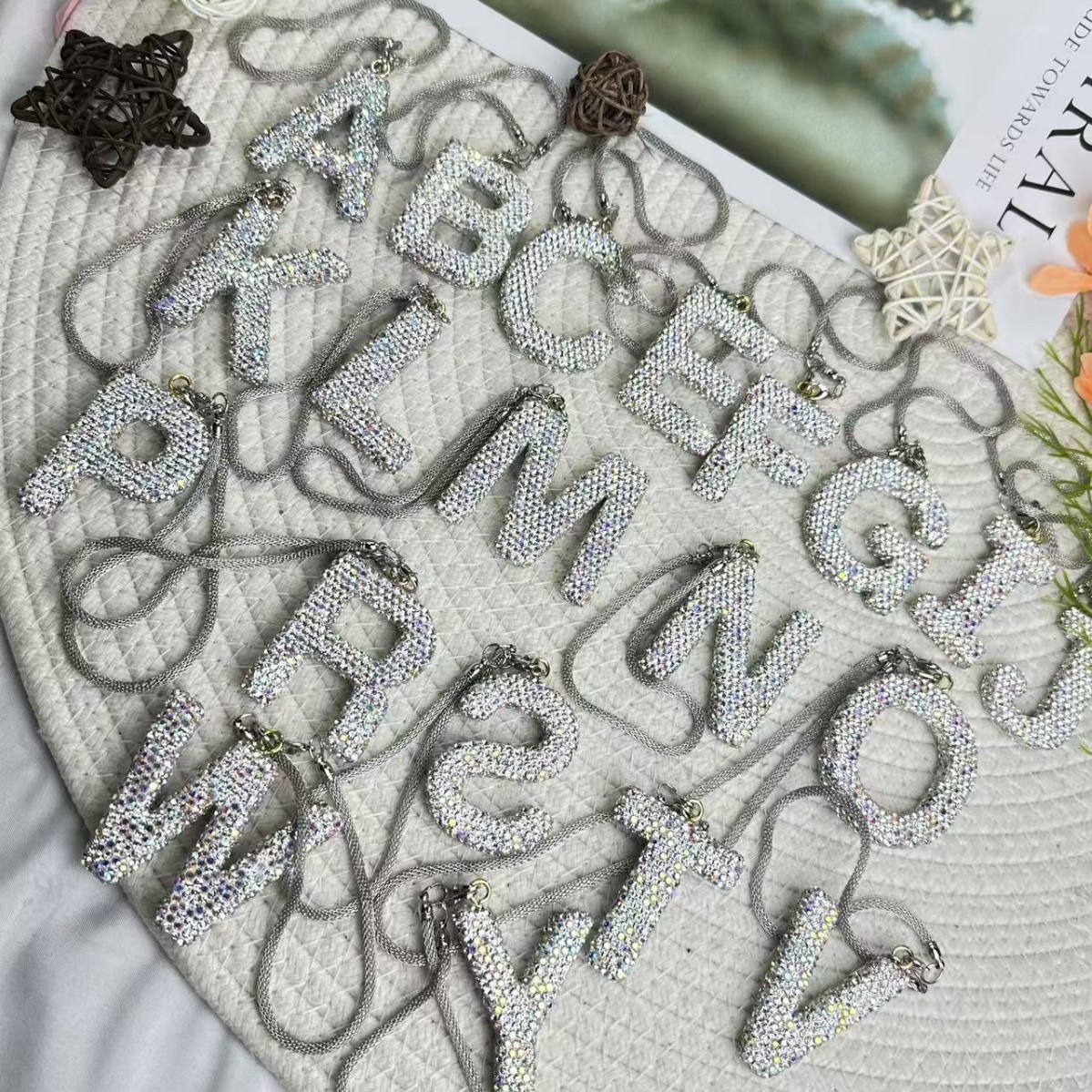 26文字の英語ダイヤモンドキーホルダーアクセサリー、バッグ、車、ギフト、ペンダント、フルダイヤモンド文字ペンダント、車載装飾