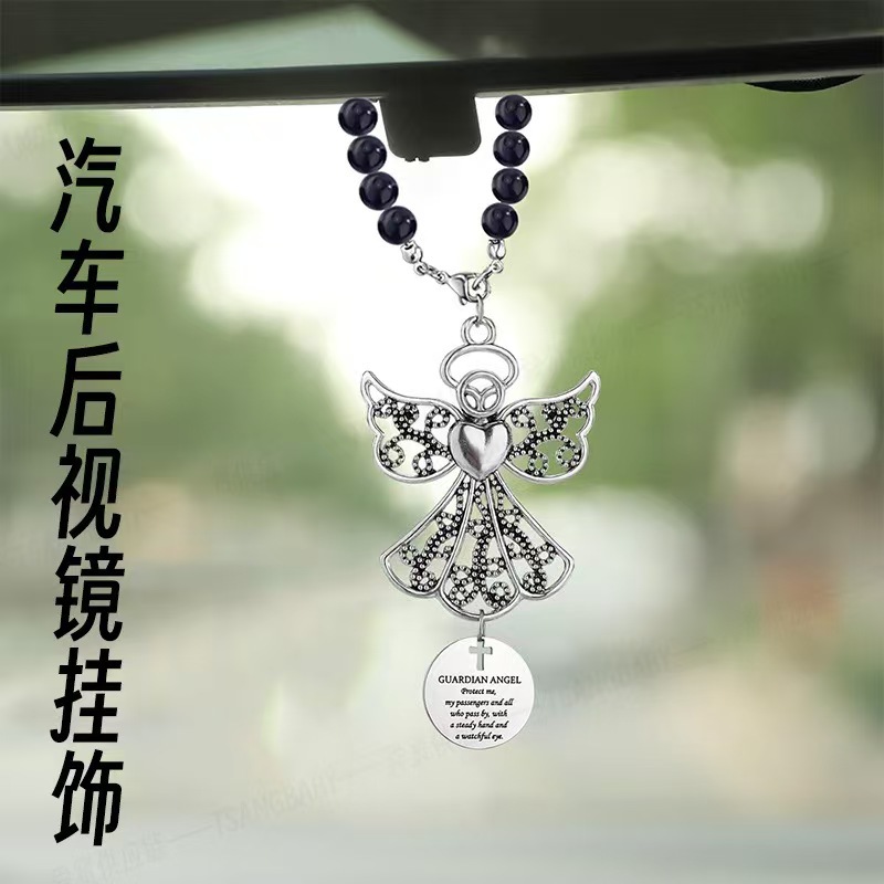 天使の車の装飾のバックミラーのフックストラップは新しい運転手に祝福の守護天使のプレゼントのアクセサリーを送ります。