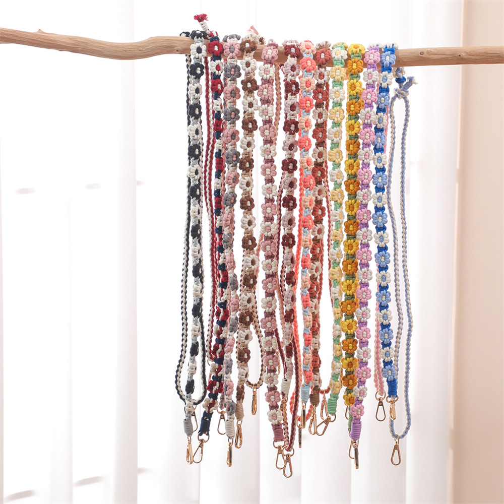 長さ調節可能編みストラップins手編みデイジー花ストラップ斜め掛けストラップストラップ