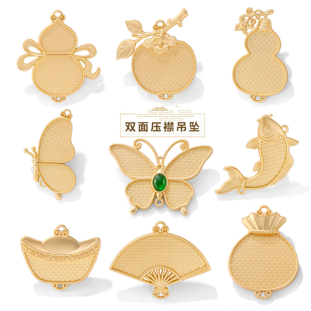 リボン付きひょうたん型両面刺繍宋錦ペンダント、胎底錦鯉両面カバー、革貼り布DIY胸飾り