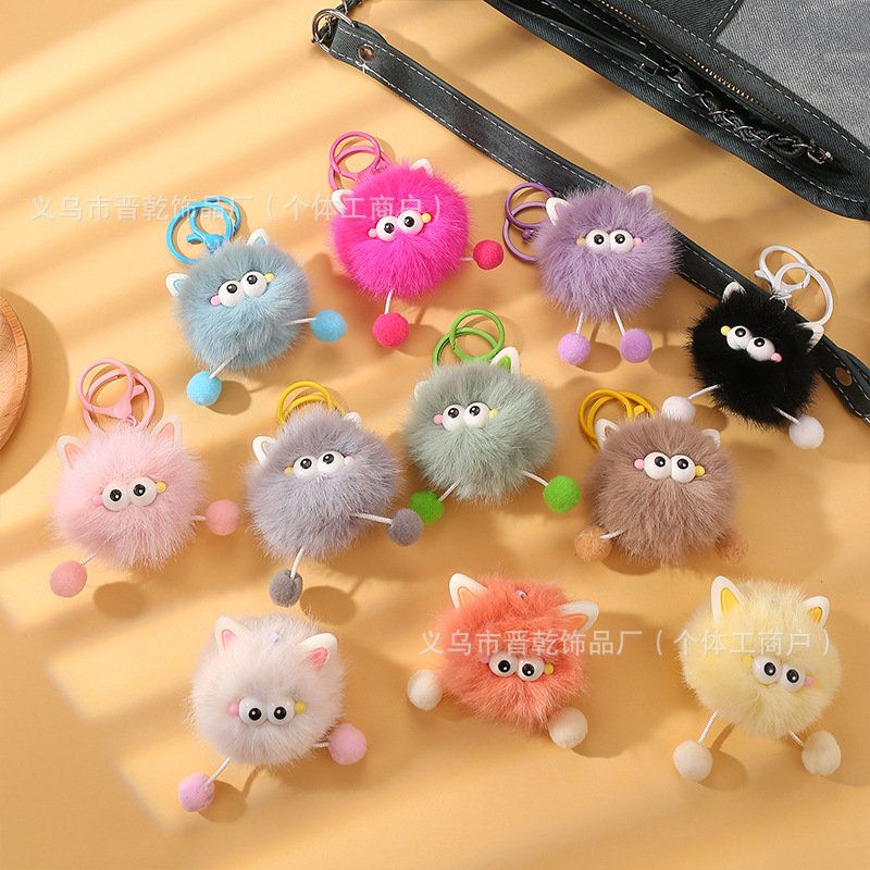 新しい毛の耳の小さい妖精のペンダントのかわいい小さい石炭のボールの漫画のかばんのカップルの金のキーホルダーは卸売りを飾ります。