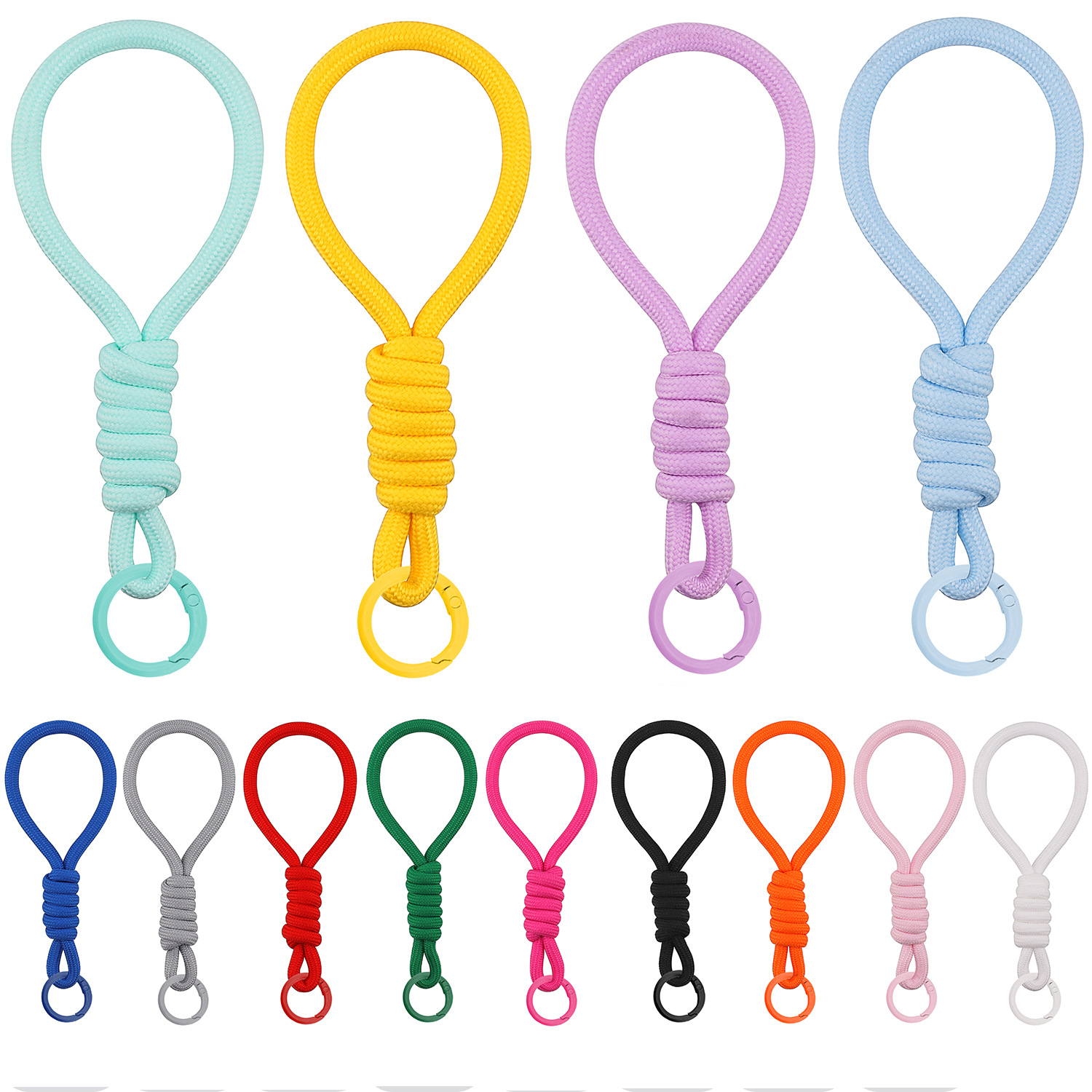 ナイロンモノクロ編組ロープキーホルダーストラップ男性と女性のカラビナカップルハンドロープバッグペンダント携帯電話ストラップキー