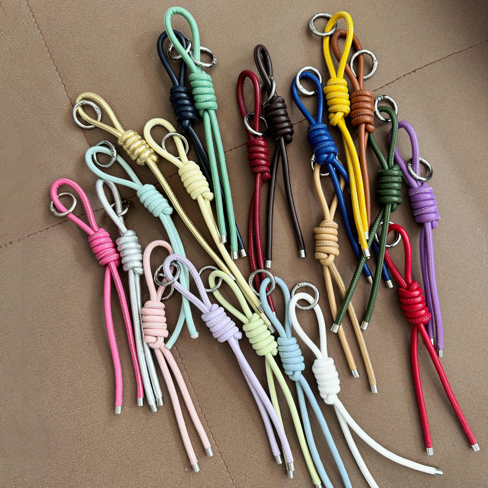 ファッションpu革紐ペール結び飾りインスタ風キーホルダー財布ストラップシンプル手編みバッグアクセサリー