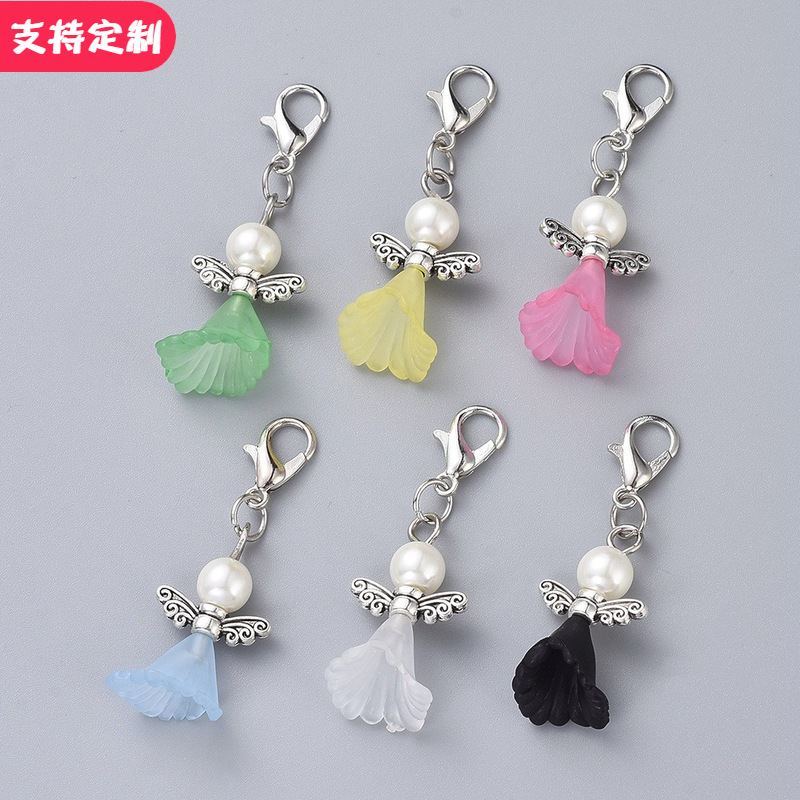 国境を越えたアマゾン合金ロブスターガラス真珠吊り飾り天使の羽アクリルスカートのキーホルダー部品