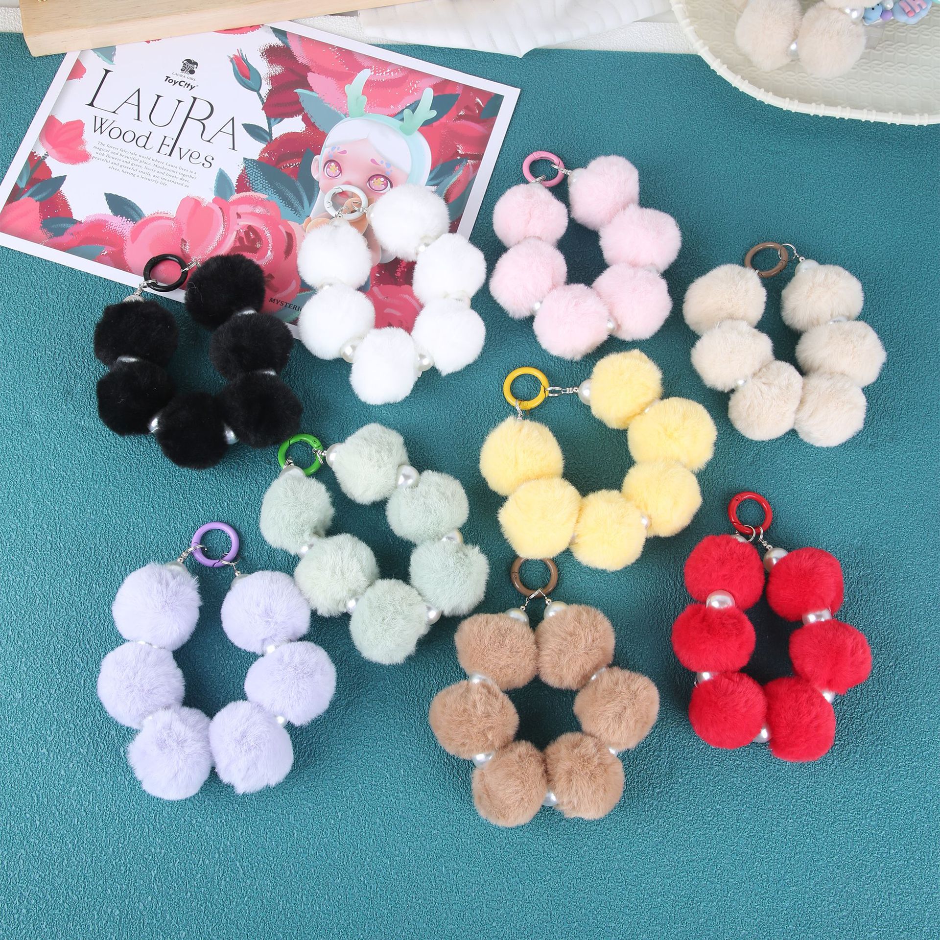 新商品のぬいぐるみの毛玉のチェーンの携帯電話のケースの装飾のアイデアの塗装のスプリングリングの部品の女性のカバンの装飾