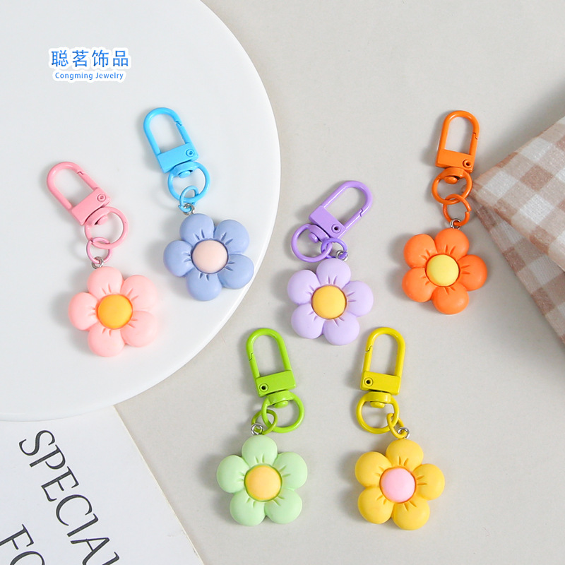 Ins混彩ソフトゴムの小さい花のキーホルダーのペンダントの小さい清新な個性の樹脂の花の包みは小さい贈り物を飾ります。