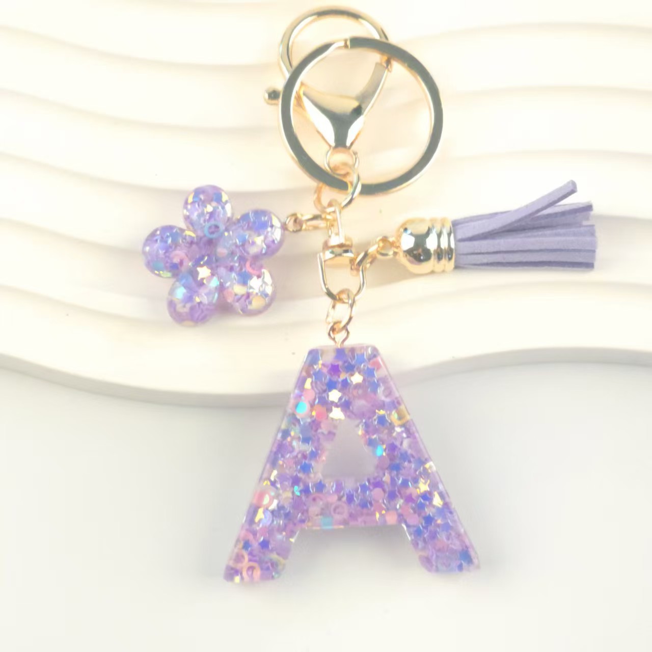 新しい紫色の花のスパンコールの水晶ののり26英語の頭文字のキーホルダーの男性の女性のカバンの贈り物のペンダント