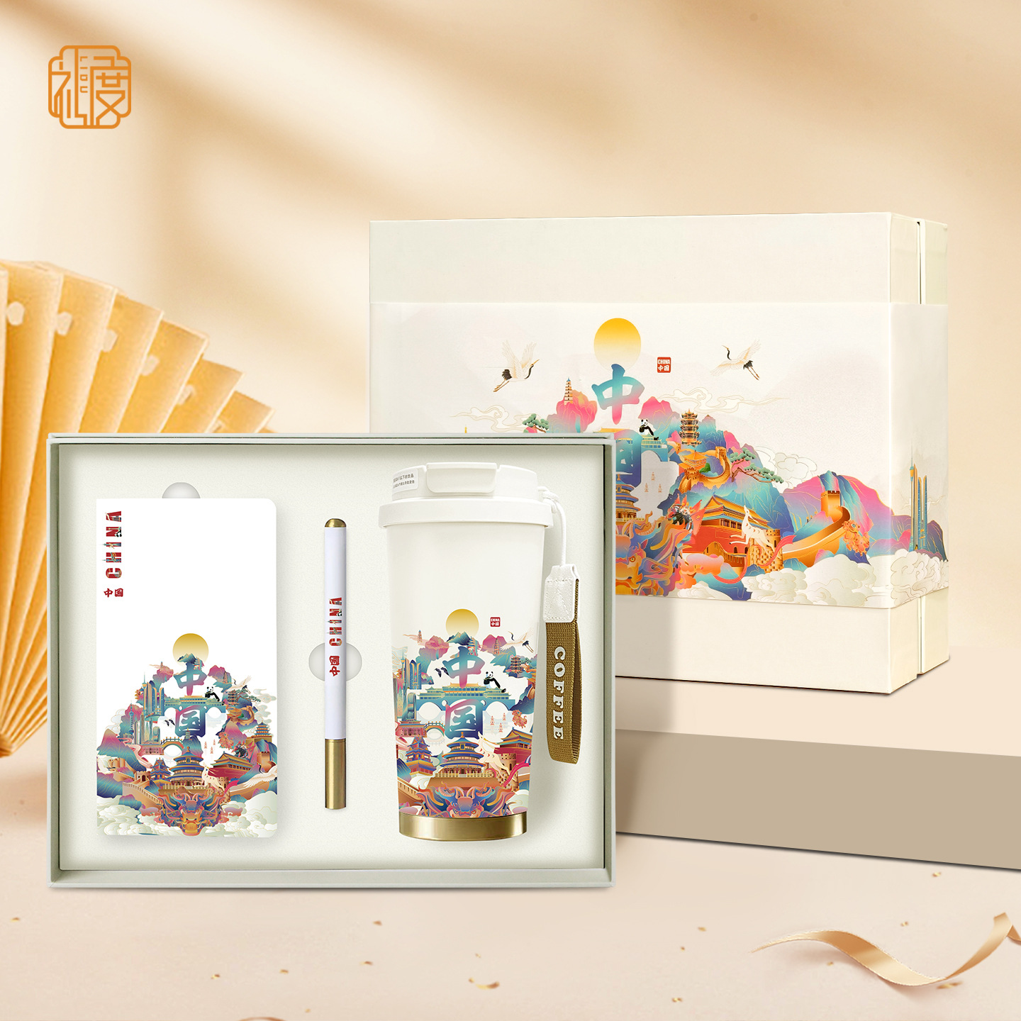 国潮都市要素文化創意ビジネス記念品コーヒーカップ高級実用ギフトボックスセット、顧客訪問用