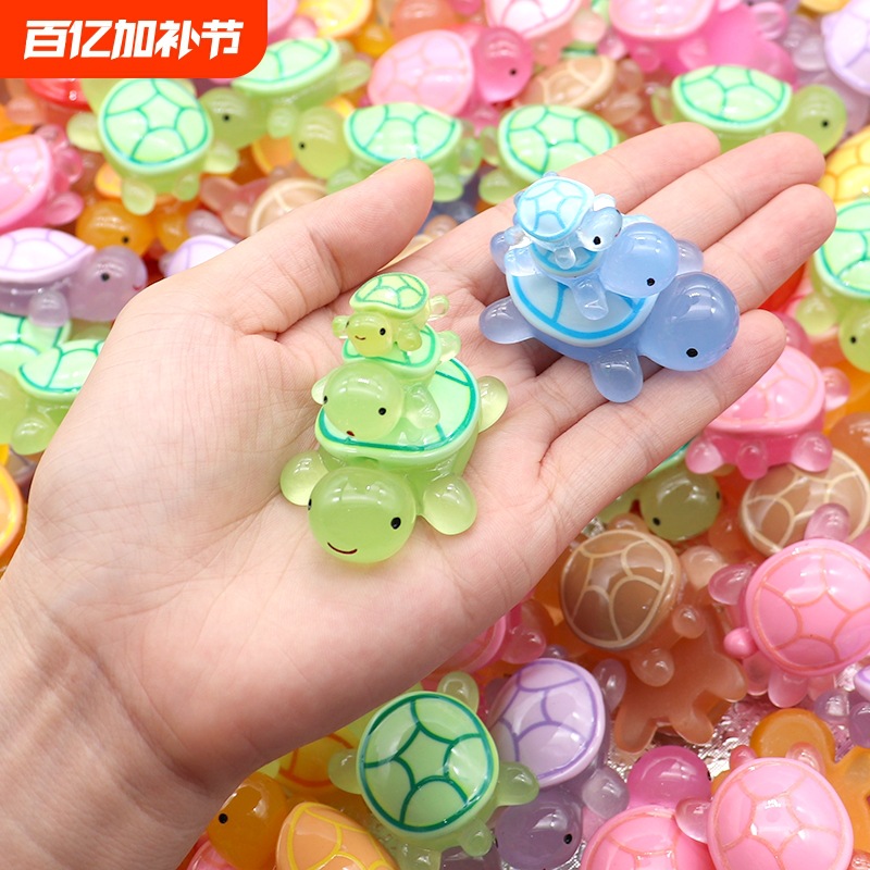 カラフルな発光小さなカメのペアおもちゃの装飾品水槽 DIY 装飾ブラインドバッグボックス漫画デスクトップ