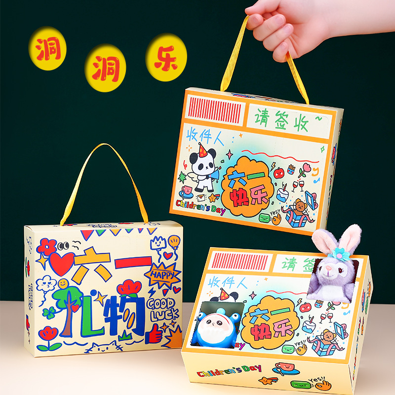 六一子供の日プレゼント洞洞楽幼稚園の子供たちはプレゼントを持っています。
