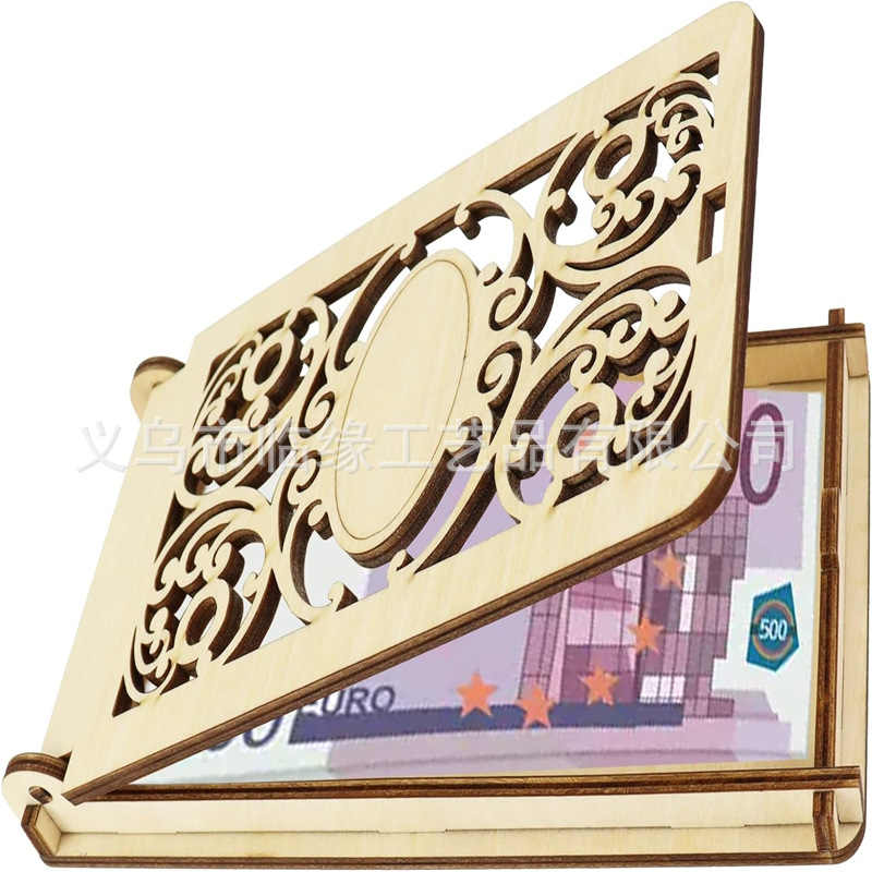 国境を越えた新しい木製財布のアイデア折り畳み可能DIY現金プレゼント金銭プレゼント包装木製ギフトボックス