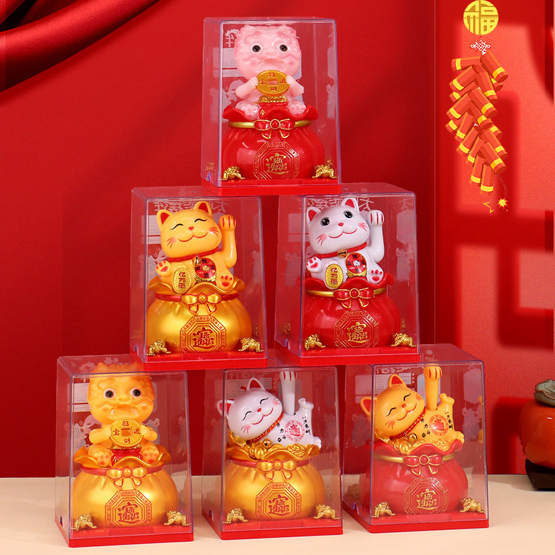 3.6inch クロスボーダー大型マネーバッグ福袋手振りソーラー招き猫カーショップホームカーオーナメント