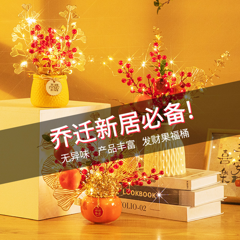 喬迁の喜新居配置装飾発財果入宅引っ越し式用品客間装飾品置物福桶