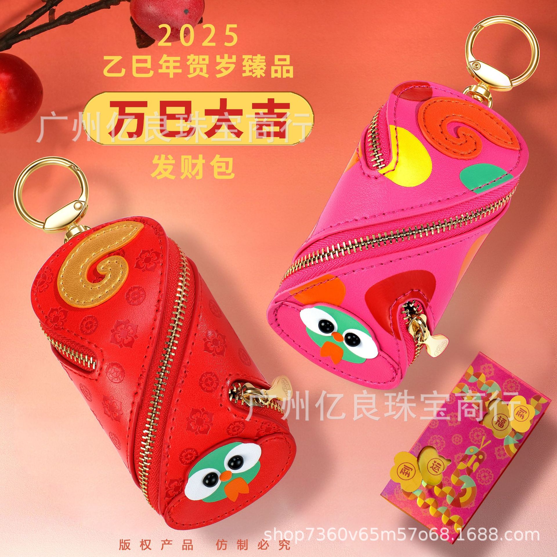 2025蛇年足金金持ちバッグキーホルダー万巳大吉かわいいミニ小銭入れ女子ストラップ