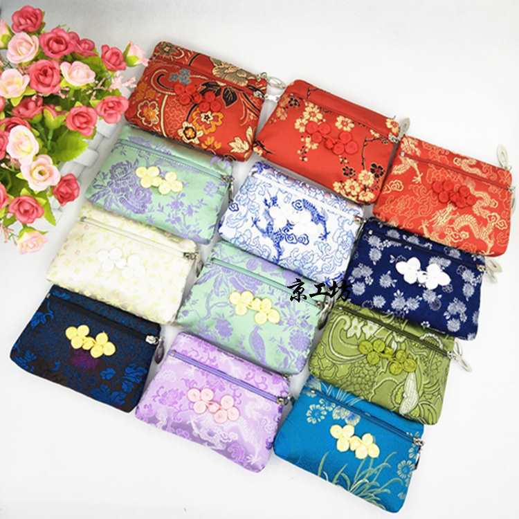 手編みボタンシルク刺繍錦織ダブルジッパー小銭入れコインバッグクリエイティブクラシック織錦刺繍収納バッグ