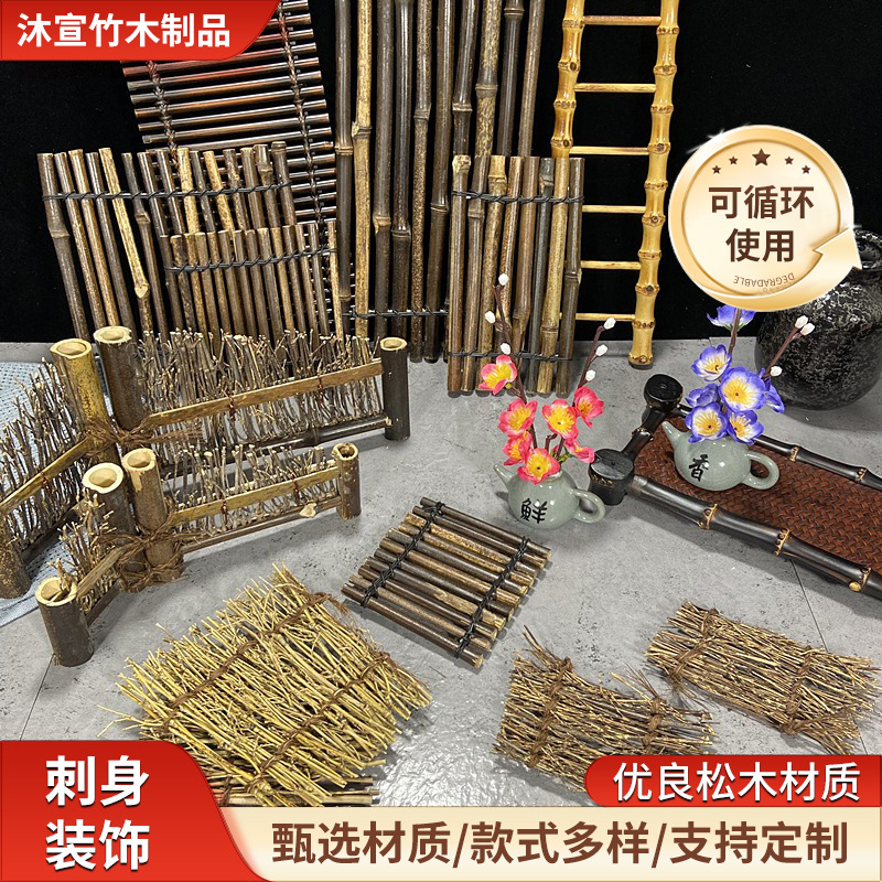 刺身の装飾品竹のフェンスの日の材料は皿の竹のはしごの日本式の焼肉の盛り合わせの竹の糸の海鮮の姿を作って道具を作ります。