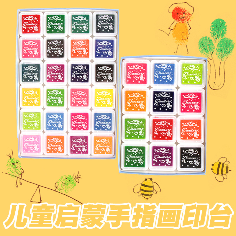 子供のフィンガーペイントインクパッドカラー 3*3 12 色インクパッドインクパッド手のひら指インクパッドプレート 24 色セットクロスボーダー