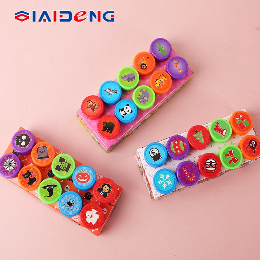 10個入りハロウィーン印鑑鬼節アニメ円形五色手帳クリスマスプラスチック創意印泥
