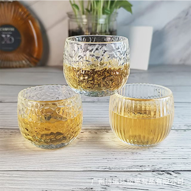 日本式カラー水晶カップハンマーガラス小建杯品茗杯厚手のカップセット
