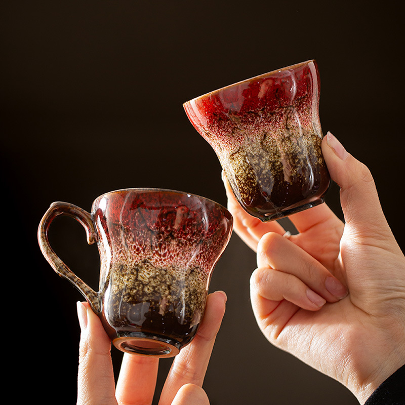 新型水杯茶杯陶器窯変耳付きひょうたん型レトロマスターカップ家庭用功夫茶杯