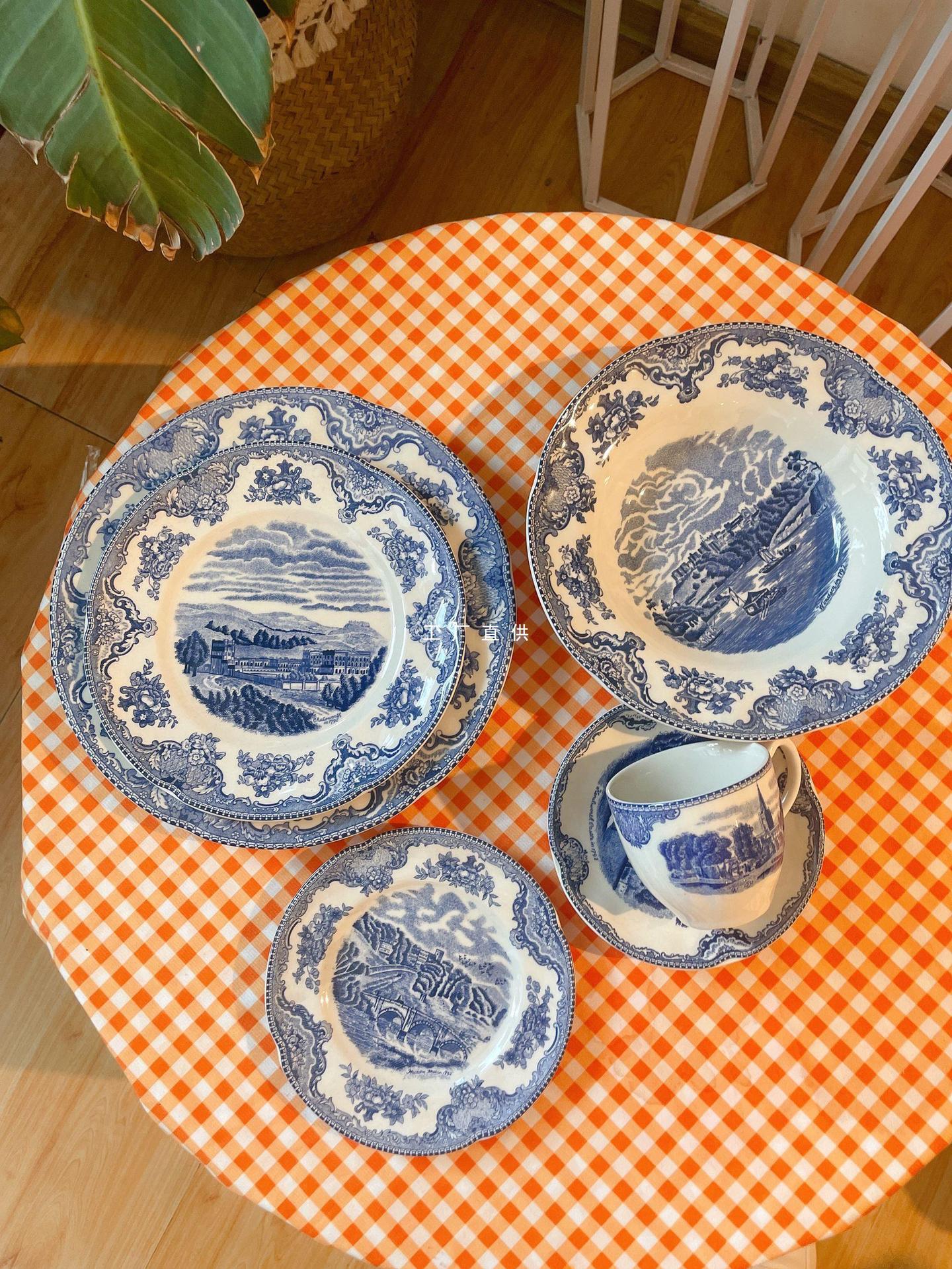 外国貿易の最後のJbs青い城の中古の皿の黄色の磁器のステーキの皿の深い料理の皿の下でお茶のデザートの皿のご飯の碗