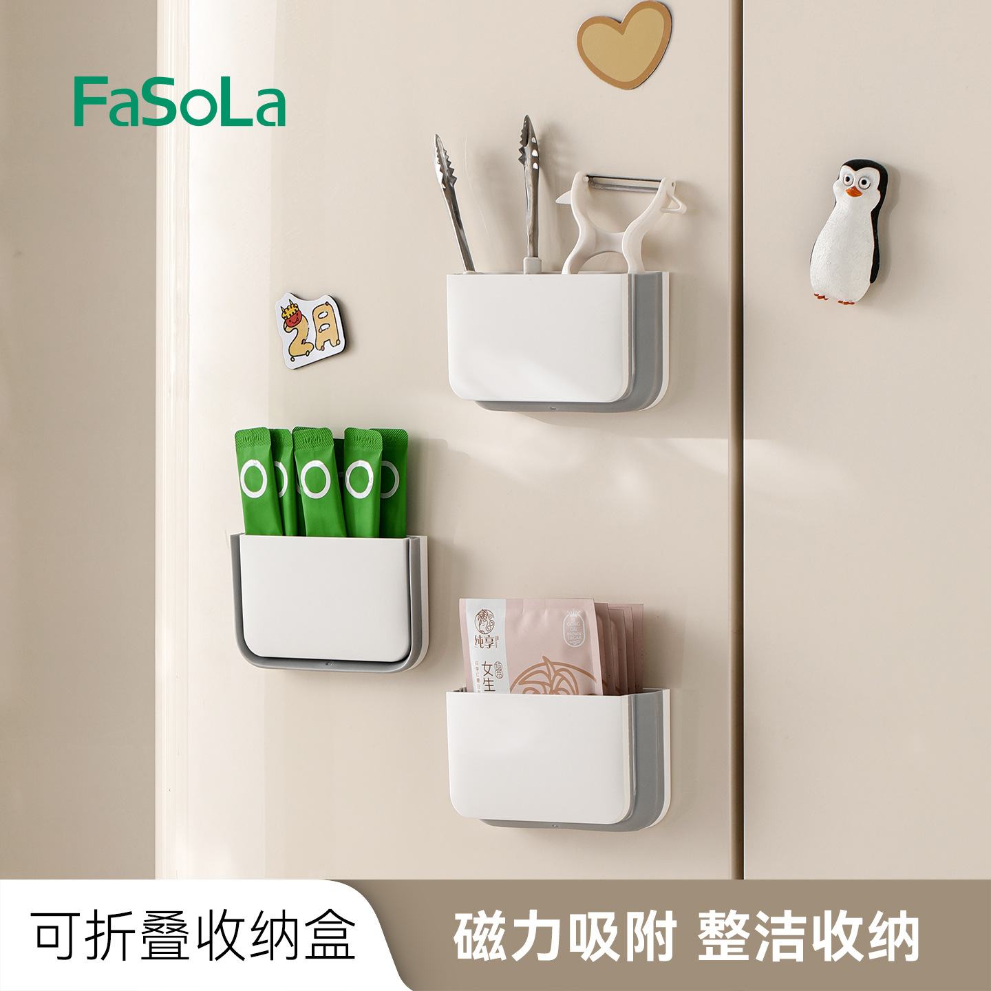 FaSoLa 磁気吸収ボックス 収納ラック 穴あけ不要 冷蔵庫横吊ペンホルダー ウォールステッカー 折りたたみ式収納ボックス
