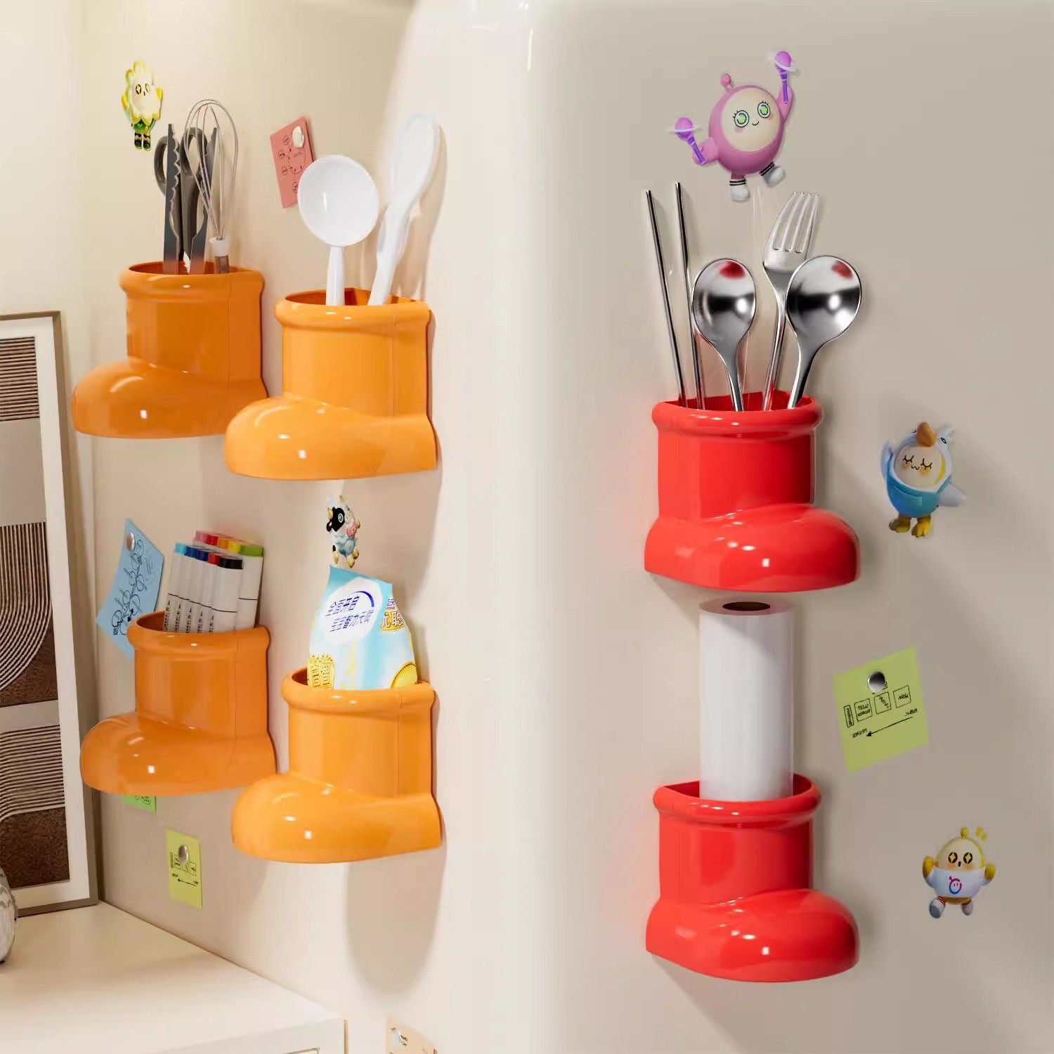 クリエイティブ漫画かわいいブーツ磁気吸引式冷蔵庫大収納ケース装飾ネット赤学生デスクトップ収納ペンホルダー