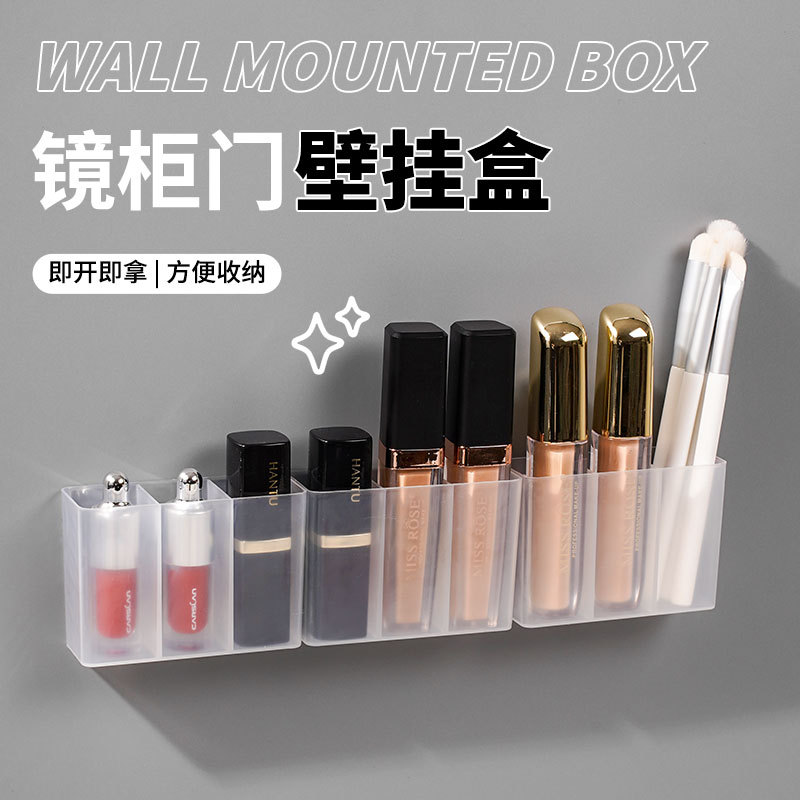 口紅収納ボックス穴なし壁掛けミラーキャビネット眉筆はさみブラシ分格透明小物整理収納棚