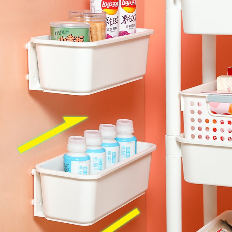 台所の回転吸盤の物置棚のネギのニンニクの収納ケースは穴を開けないで壁掛け式の小さいかごの多機能の収納かごです。