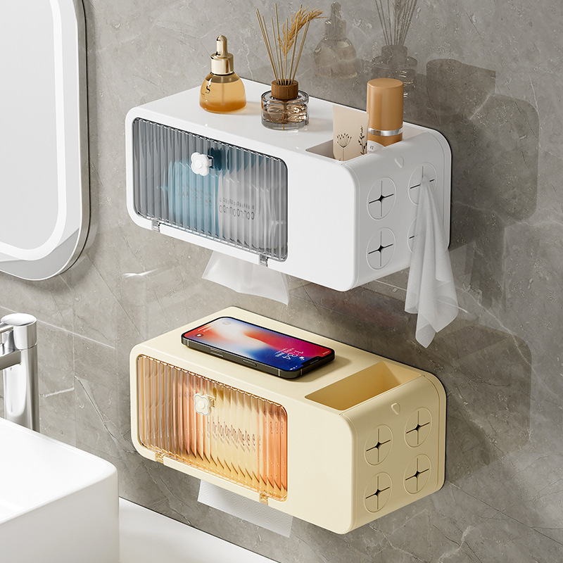 壁掛け式カバーティッシュケース多機能家庭用穴なし浴室トイレティッシュ収納ケース
