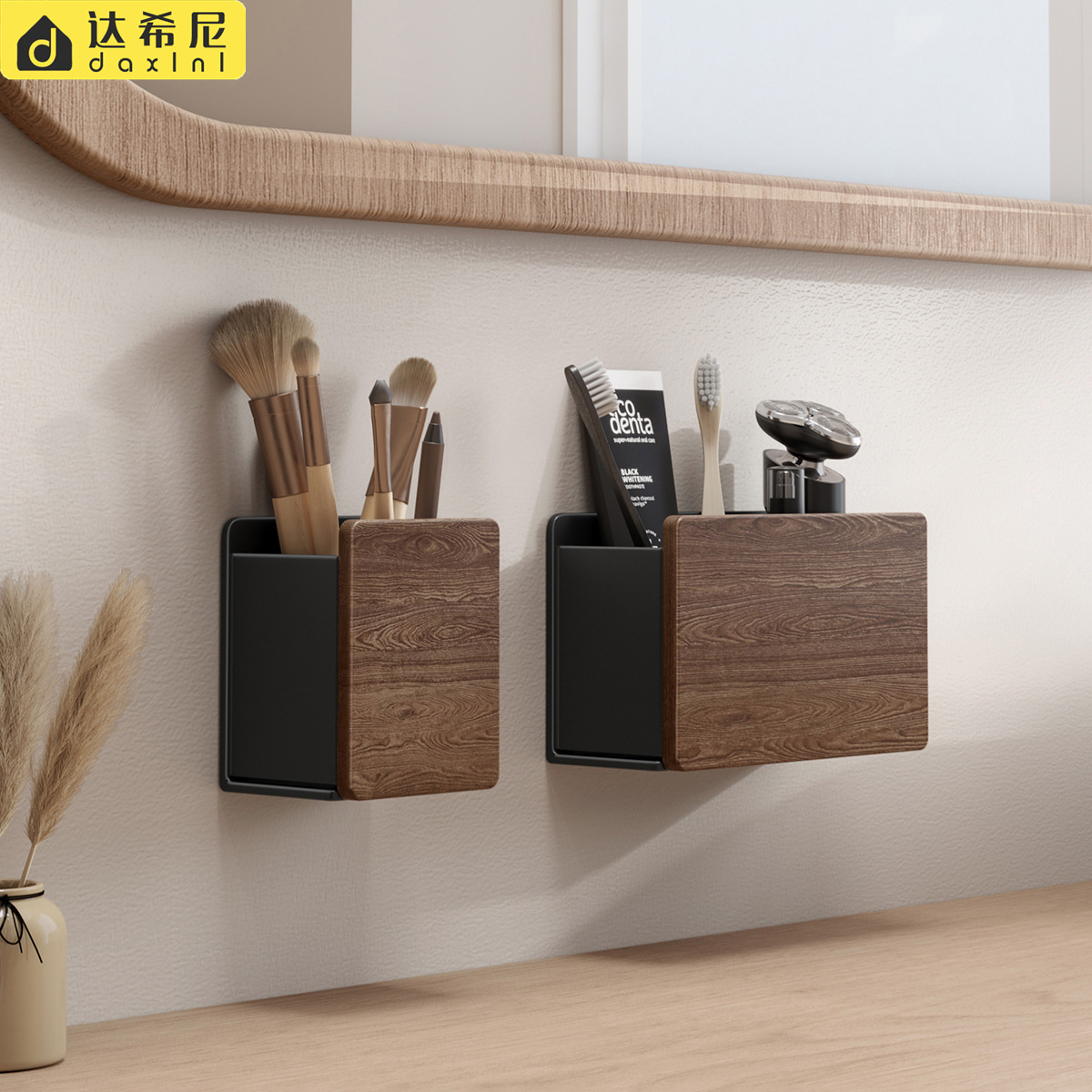 多目的収納ボックス壁掛け式穴なし眉筆化粧ブラシ収納棚浴室用の豪華な胡桃の木製棚