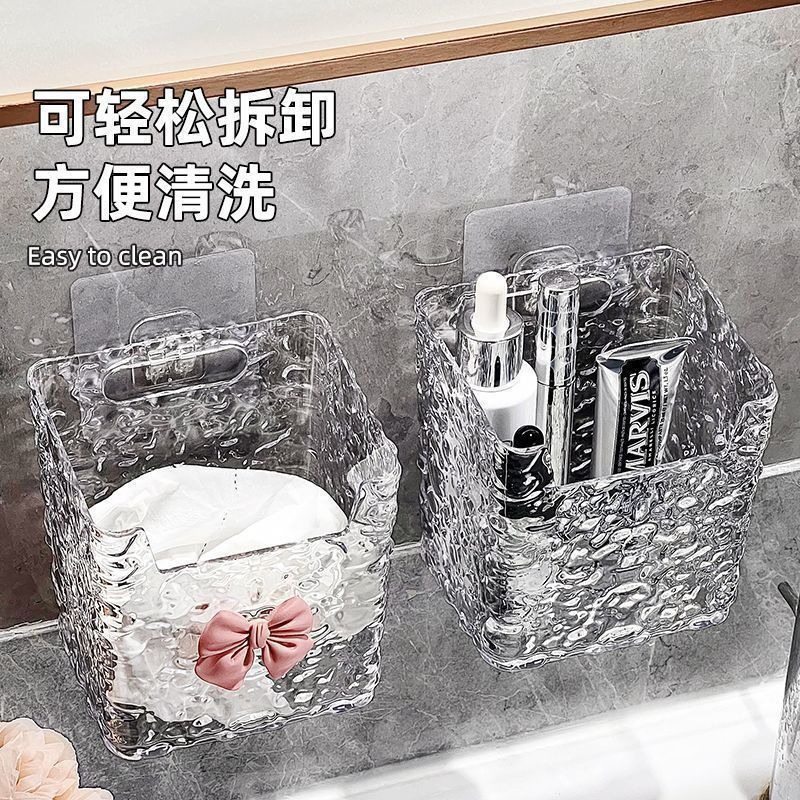氷河紋軽豪華無痕壁掛け棚浴室透明化粧品廃棄洗顔タオル雑物収納ケース
