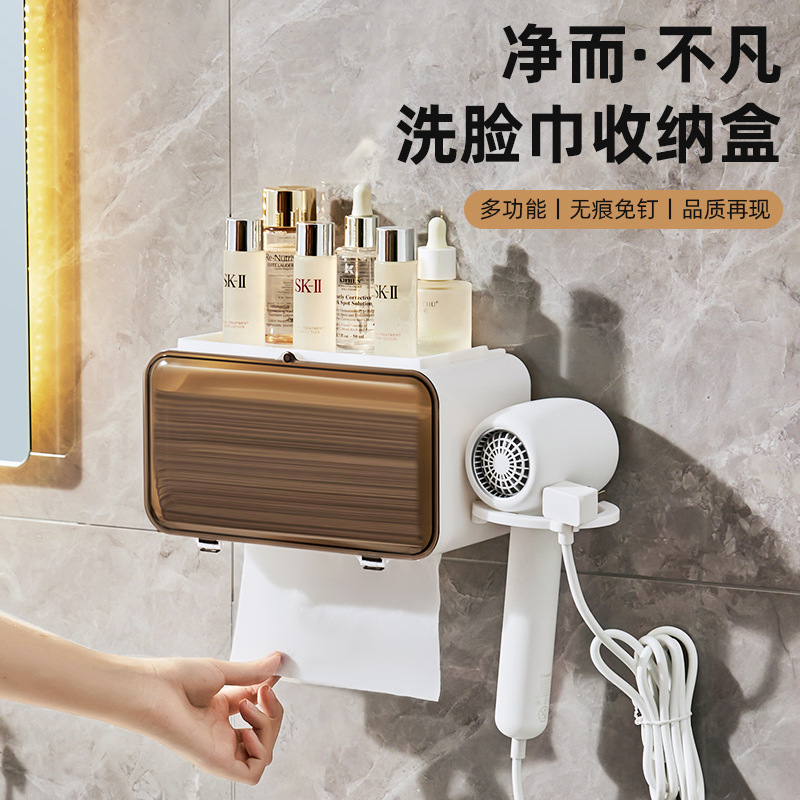 壁掛け式収納ケース家庭用浴室トイレ洗面タオルウェットティッシュ収納軽贅沢透明穴なしウェットティッシュケース