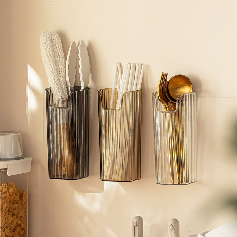 納川壁掛け式透明箸筒穴なしキッチン用食器収納ケース食器棚扉収納整理ケース