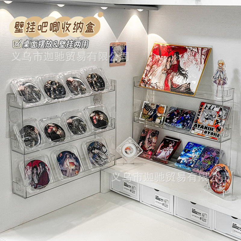バー展示棚階段アクリル透明デスクトップ谷子収納ケース立札周辺バッジカード棚
