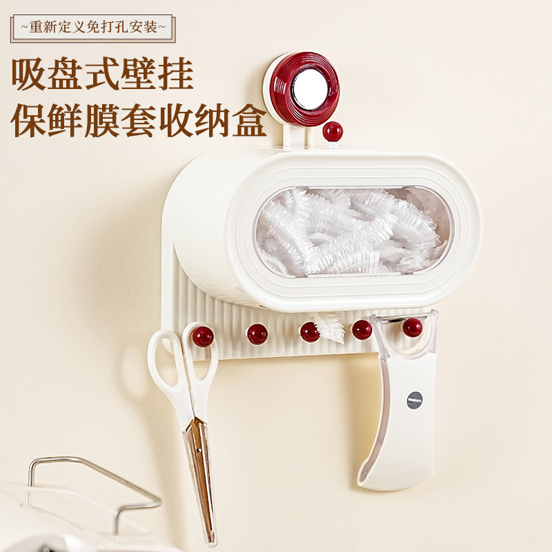 [Ganwang] 吸盤壁掛け収納ボックス ラップフィルムカバー 整理ボックス キッチン 多目的 透明 収納ラック 蓋付き