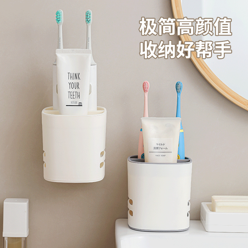 シンプルな壁掛け式収納ボックス家庭用浴室トイレ穴なし排水棚歯ブラシ歯磨き粉収納桶