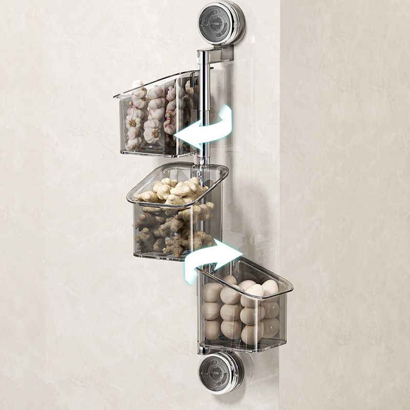 穴なし吸盤調味料棚厨房収納ケース家庭用ネギにんにく収納棚壁掛け多機能