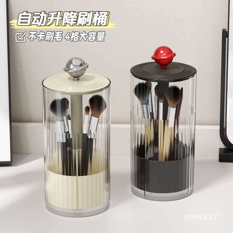 自动リフトメイクブラシ収纳筒高级感ダストブラシペン筒化粧品ホルダーデスクトップ収纳ケース