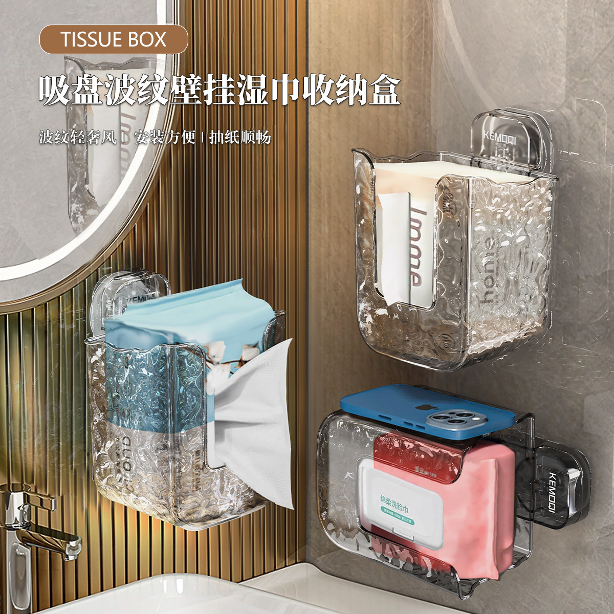 吸盤壁掛け式ティッシュボックス家庭用浴室トイレウェットティッシュ洗面タオル収納軽贅沢高級感引き出し箱