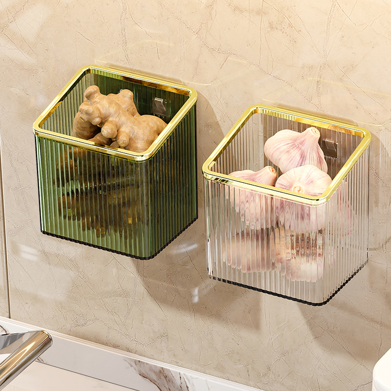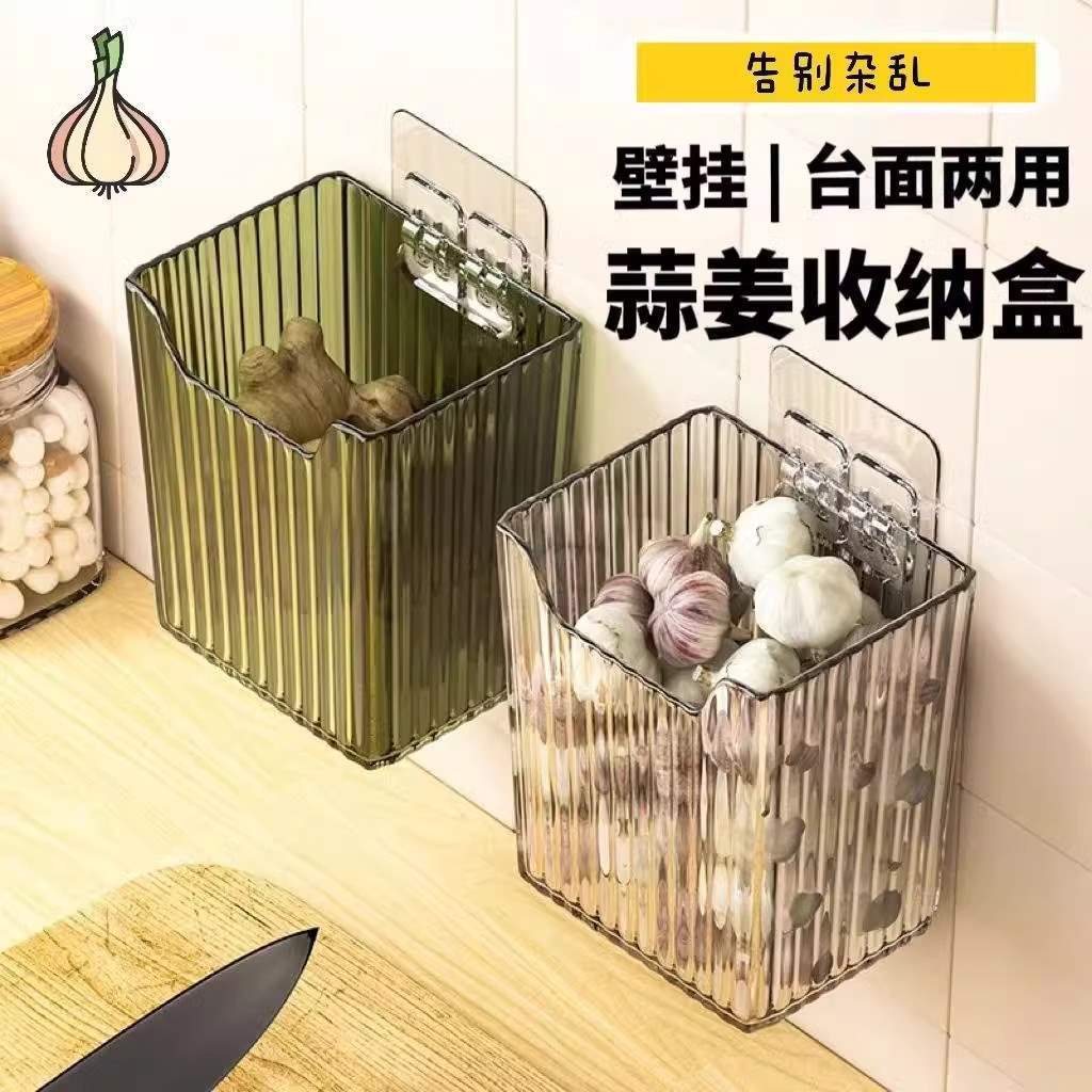 キッチンにんにく姜葱透明収納バスケット小物穴なし壁掛け収納ケースキッチン棚