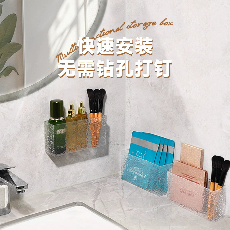 ♡ 軽量高級化粧品収納ボックス氷河パターン収納ボックス浴室ホーム寮痕跡のない壁掛け雑貨収納ボックス