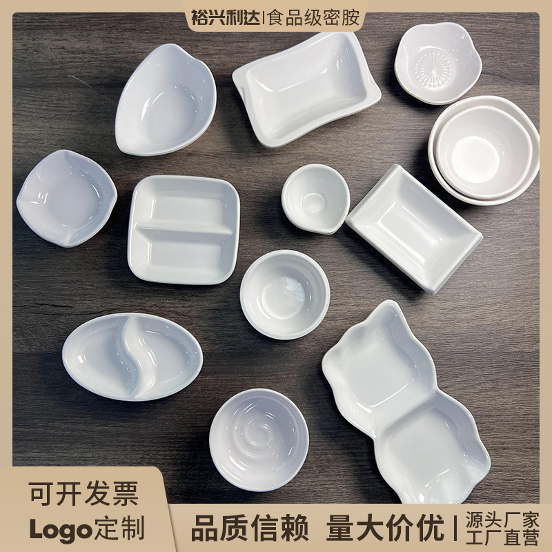 メラミンの白いつけ物の皿の双格の味の皿の酢の皿の唐辛子は皿の日本式の寿司の醤油の皿をつけます。