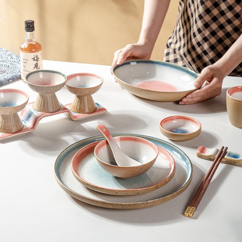 輸出アマゾン工場直売日本式ホテル置物台陶磁器食器皿セットレストラン食器皿