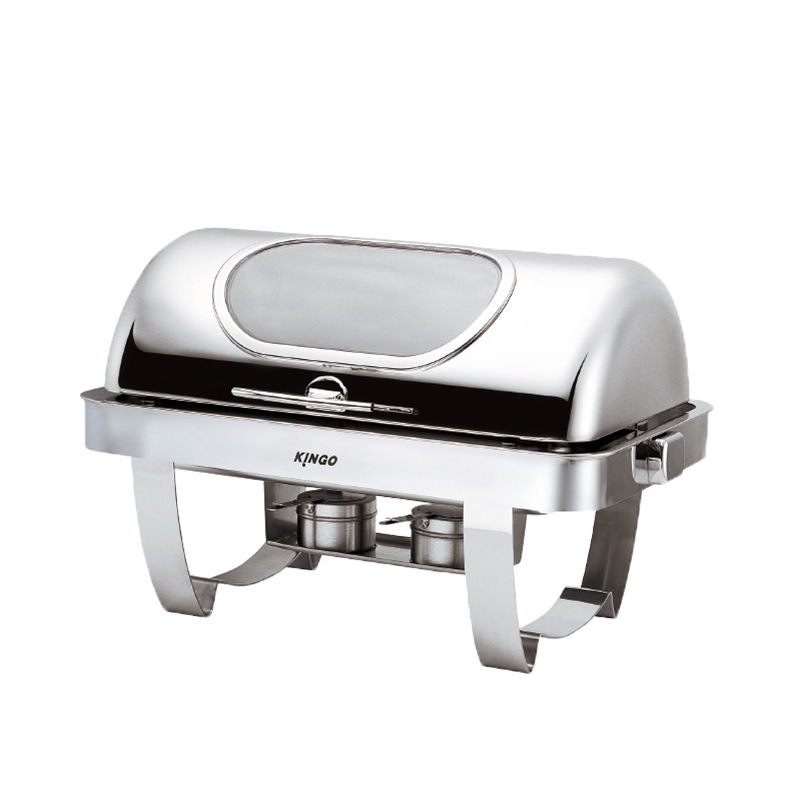 Roll TopゴールドチャフィングDish 6l人気6lセルフサービス炉金メッキカバー布菲炉