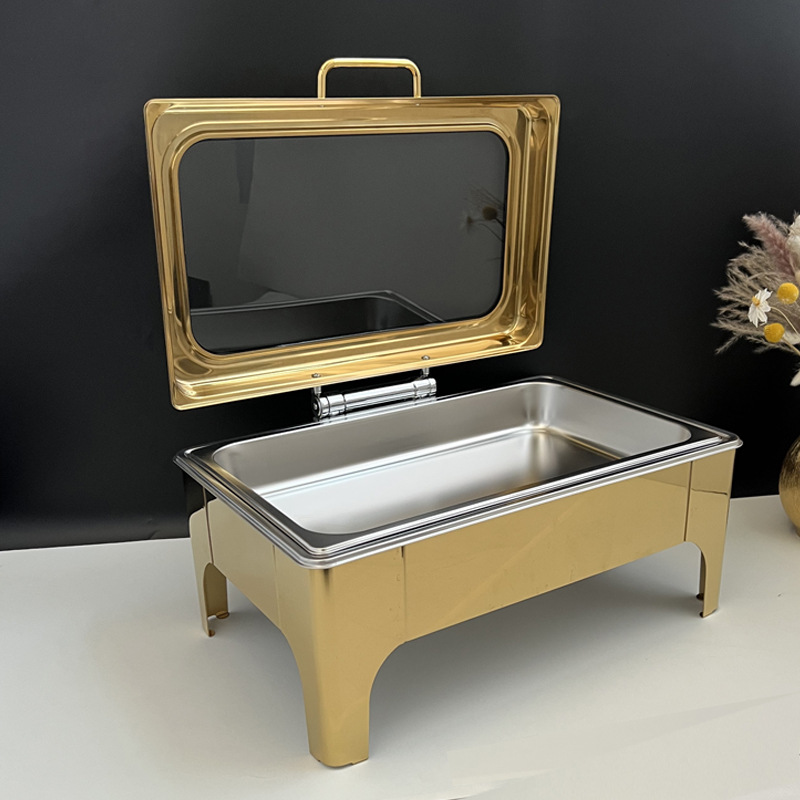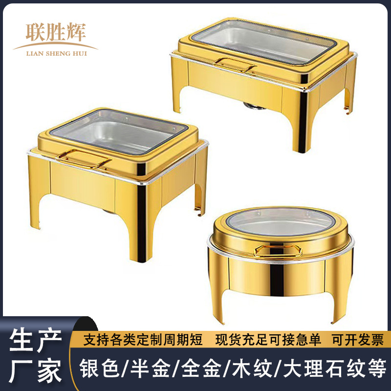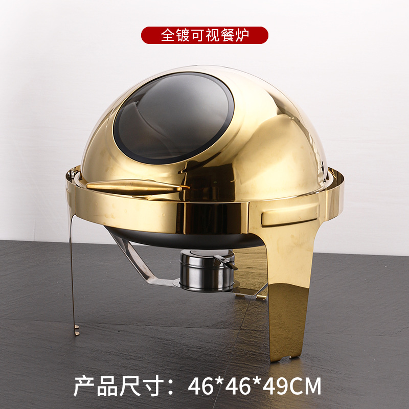 商業ホテル油圧ビュッフェストーブフルフリップトップ断熱ステンレス鋼クロスボーダービジュアル金メッキホテルビュッフェストーブ