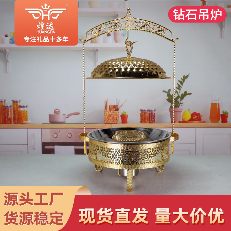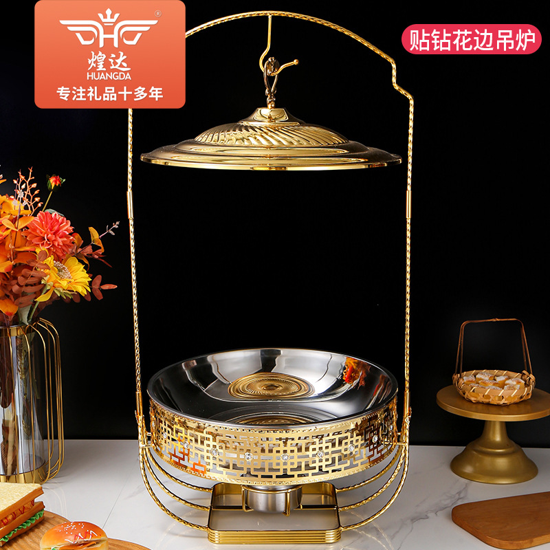 国境を越えた高級レースステンレス金色アルコール炉ホテルレストランのセルフサービス炉は保温炉を吊るすことができる